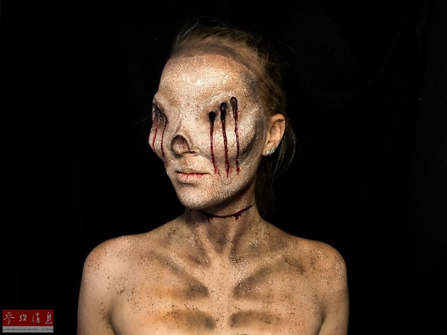 16岁女孩自学特效化妆 打造科幻人体彩绘(组图)