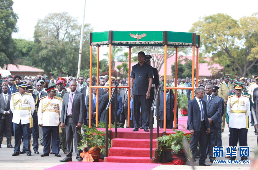 5月25日,在赞比亚首都卢萨卡,赞比亚总统伦古(中)出席非洲解放日纪念活动。当天,赞比亚在首都卢萨卡举行盛大活动,纪念非洲解放日。每年的5月25日是非洲解放日,它是非洲人民团结反帝反殖,捍卫国家主权和独立,争取民族解放斗争的纪念日。新华社记者彭立军摄