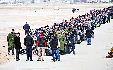 2011年2月,利比亚爆发大规模骚乱。中国政府从利比亚撤出中国公民3万多人。图为当年2月25日,中国人员在利比亚班加西港准备登上“希腊精神”号客轮撤离。图片来自网络