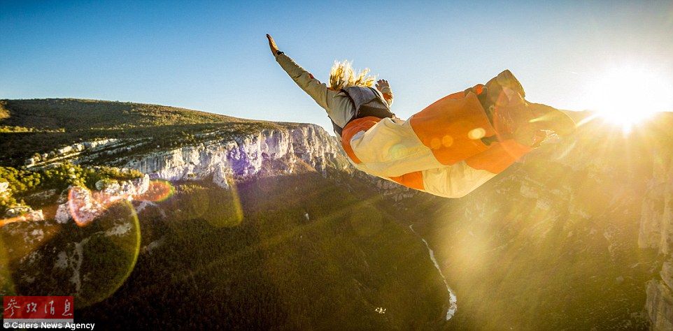 奥地利勇士徒手攀爬400米岩壁后一跃而下(图)