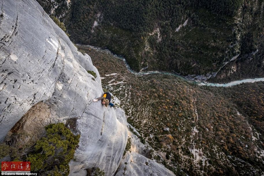 奥地利勇士徒手攀爬400米岩壁后一跃而下(图)