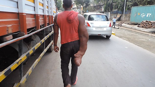一个来自印度、名为巴布卢(Bablu )的男孩就遭遇这样的不幸。他患有“局部巨人症”。除去右手,他和正常人无异,但是尽管他想极力隐藏,畸形的右手却引来路人频频注视的眼光。巴布卢的右臂重达20千克,远远望去,就好像一团巨大的肉代替了他原来的胳膊,所谓触目惊心。