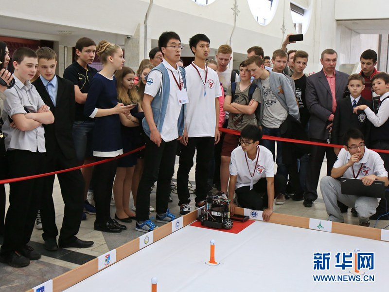 5月25日,中方队员上场比赛,参赛机器人将较量谁能在单位时间内收集到最多的高尔夫球。5月25日至28日,中国和白俄罗斯青少年机器人技术比赛在明斯克和布列斯特两地举行,这是中白两国首次举办青少年之间的机器人技术比赛。 新华网记者 陈俊锋 摄