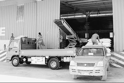 新希望公司的埃及客户正在装运饲料。本报记者 刘水明摄