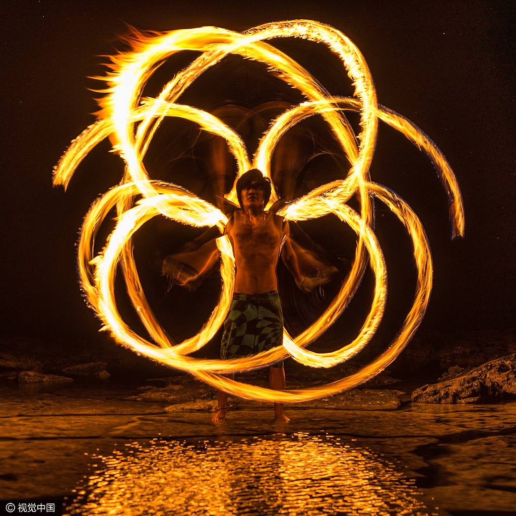 星火灿烂:摄影师拍摄银河下的火舞(组图)