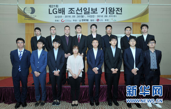 进入第21届LG杯《朝鲜日报》棋王赛16强赛的棋手合影。 新华网发(金敬东摄)