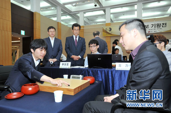 古力击败老对手韩国名将李世石晋级16强赛。 新华网发(金敬东摄)