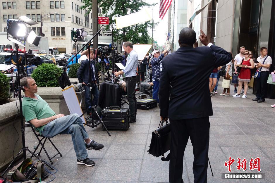 当地时间5月31日,纽约曼哈顿特朗普大厦,民众在门前抗议。随着美国选情升温,位于曼哈顿第五大道的特朗普大厦吸引越来越多的民众参观。 中新社记者 廖攀 摄