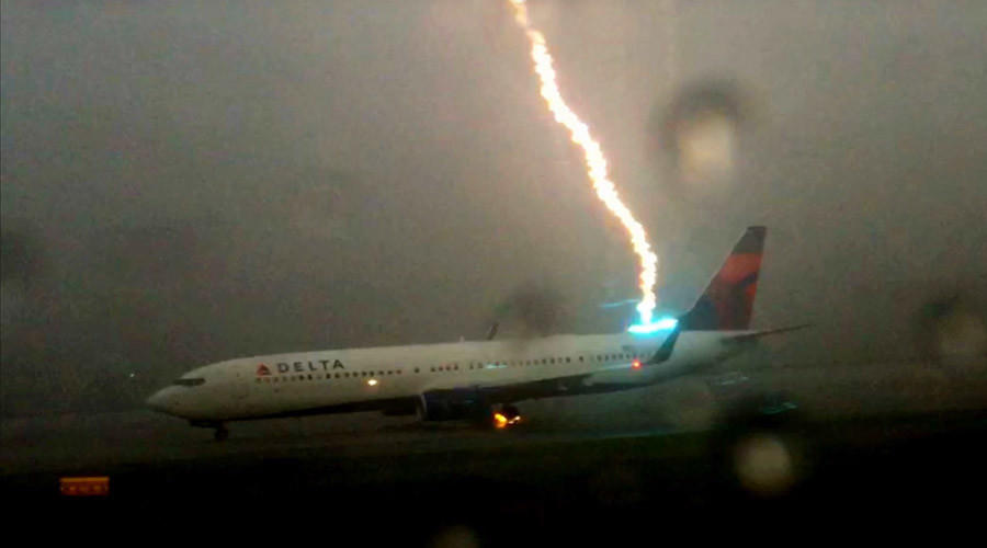 2015年8月,美国乔治亚州哈茨菲尔德-杰克逊亚特兰大国际机场,临近跑道的乘客通过飞机的舷窗拍到了隔壁跑道上一架被闪电击中的飞机。当时飞机上有111名乘客和5名机组人员,虽然引起惊恐和慌乱,所幸无人受伤。
