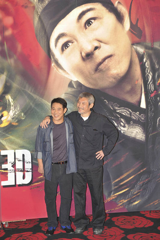 2011年5月23日,李连杰和徐克导演(右)在北京一起出席电影《龙门飞甲》记者会。新华社发(吉国强 摄)
