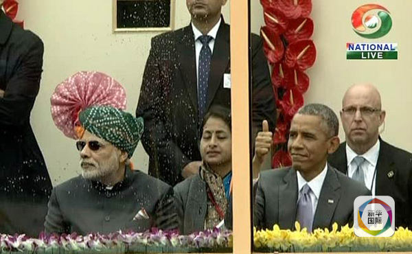 2015年1月,奥巴马任内第二次访问印度,成为首位出席印度国庆日阅兵式的美国总统。在阅兵式上,奥巴马留下了经典的嚼口香糖和竖大拇哥画面。
