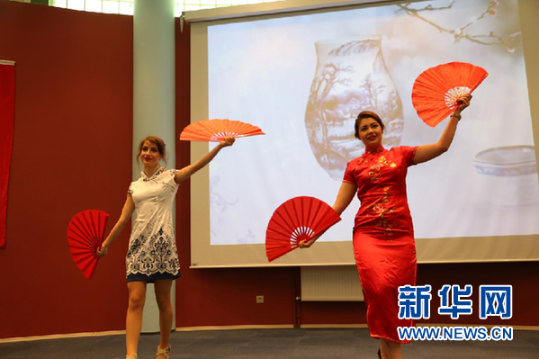 6月1日,在土耳其中东技术大学孔子学院主办的“诗词歌舞话端午”活动中,土耳其中东技术大学的学生表演扇子舞。新华网记者施春摄