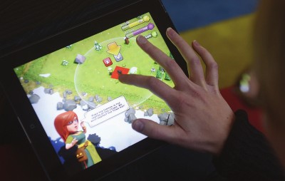 一名玩家正专心致志地玩《部落冲突》。以Superce11为代表的手游业成为芬兰创新发展的标志性行业。