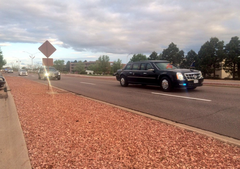 奥巴马的车队驶离空军基地。