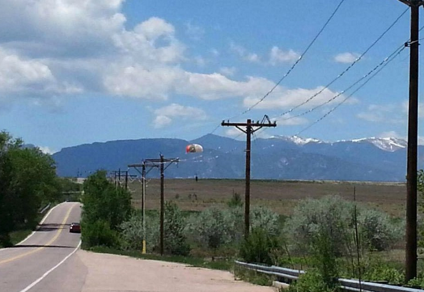 雷鸟飞行员跳伞后附近民众拍到的图片。