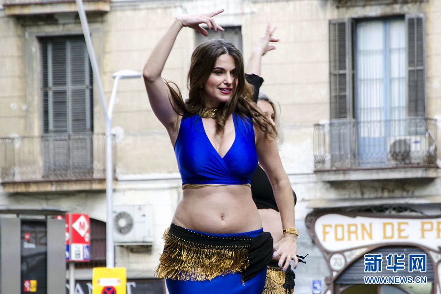 夏日临近,天气渐热,在西班牙巴塞罗那,一些社区机构开始张罗各种街头文化娱乐活动,吸引本地居民走出家门。位于巴塞罗那市中心地带的拓展区于6月3日到5日举办了一年一度的“巴塞罗那现代主义节”。节日期间,主办方临时封闭了社区几条街道,举办包括歌舞、魔术、木偶剧等不同类型的演出,还在街上临时搭建起出售手工艺品的摊位,由身着传统服饰的工作人员向大家介绍文化艺术的相关知识。图为街头舞蹈表演。新华网发(贺耀龙摄)
