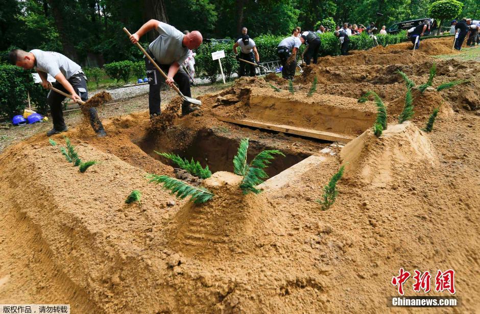 当地时间2016年6月3日,匈牙利德布勒森,匈牙利墓地运营商协会在一处公墓举办首届全国挖坟墓大赛。比赛现场各个掘墓人使出浑身解数,大展身手。