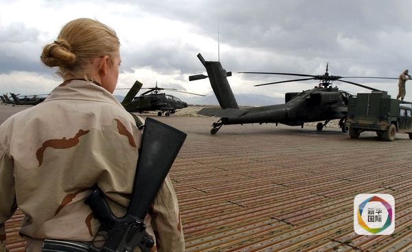资料:2003年2月28日,一名美军女兵在阿富汗巴格拉姆空军基地目送几架美军直升机起飞。(新华社记者王雷摄)