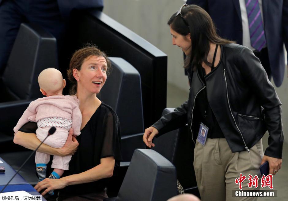 欧盟女议员抱娃开会 小家伙萌萌哒吸引媒体镜头(组图)
