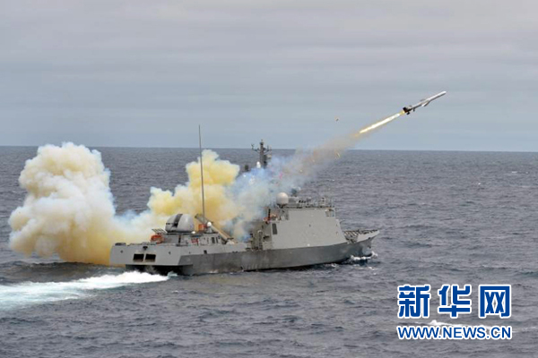 2014年6月20日,一艘韩国海军军舰在独岛(日本称竹岛)附近海域参加实弹训练时发射导弹。新华社发