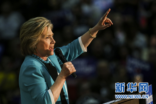 5月5日,在美国加利福尼亚州洛杉矶的东洛杉矶大学,希拉里·克林顿向支持者演讲。新华社发