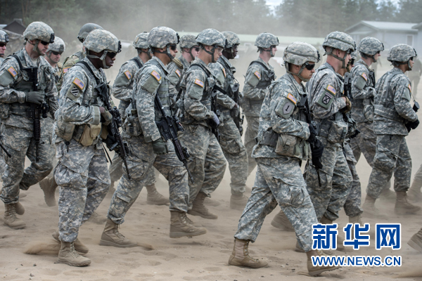 6月6日,在立陶宛帕布拉德,美国军人参加演习。新华社发