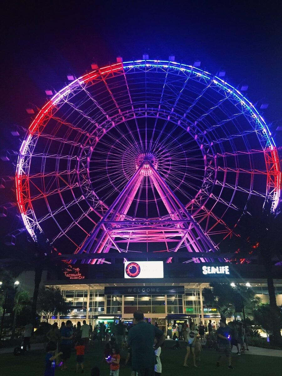 “奥兰多之眼”亮起美国国旗色与彩虹旗色。