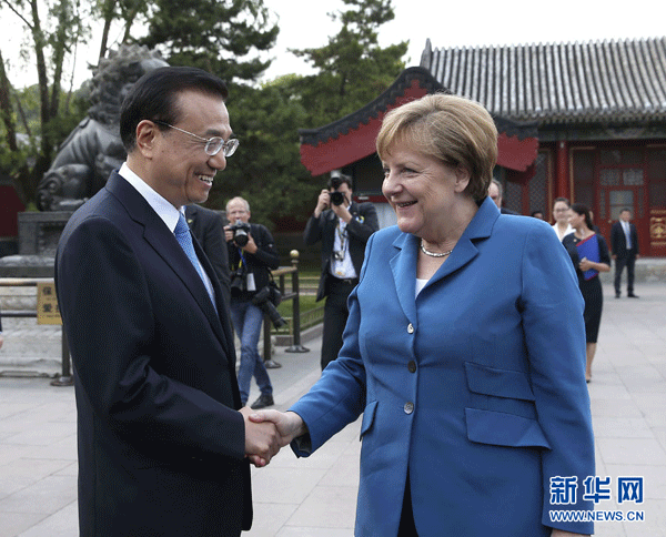6月12日,国务院总理李克强在北京会见来华进行正式访问并举行第四轮中德政府磋商的德国总理默克尔。 新华社记者 庞兴雷 摄