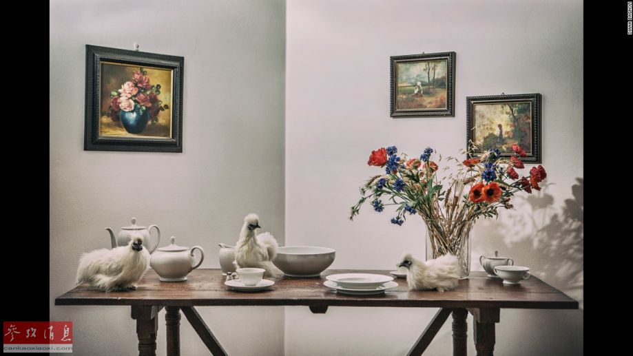Bagnoli在Facebook上搜索到了拍摄目标,这些家庭都居住在意大利都灵或者附近。她同时也联系了一些动物保护组织。图为Chiara Sgambati在意大利帕维亚家中养的几只观赏鸡。