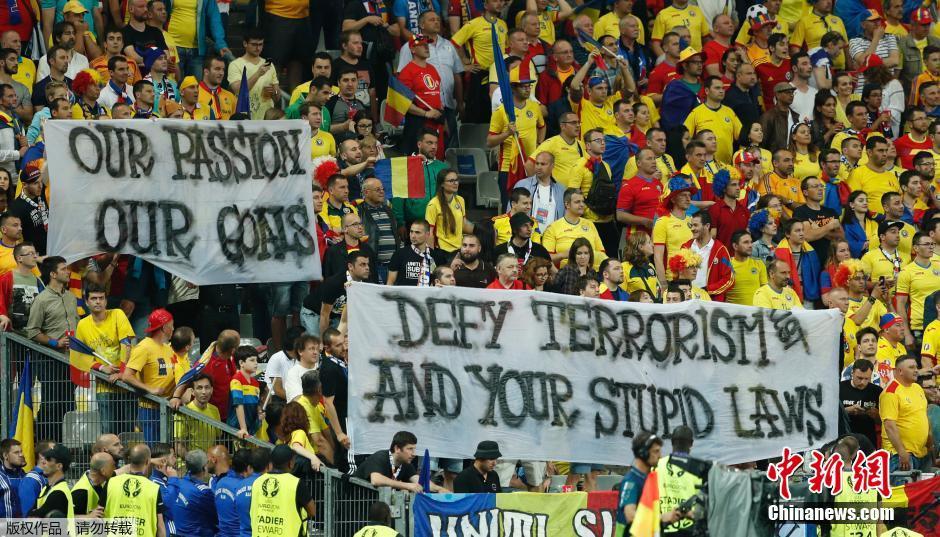 罗马尼亚球迷打出巨大的反恐条幅。