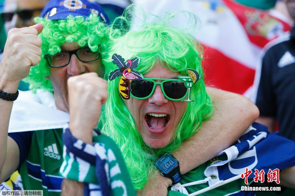 北爱尔兰球迷的绿色装扮显得略有些萌。