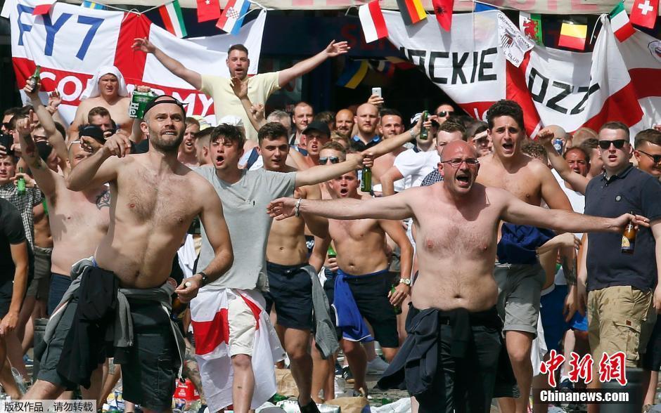 “酒精上脑”的英格兰球迷们亮出一身腱子肉。