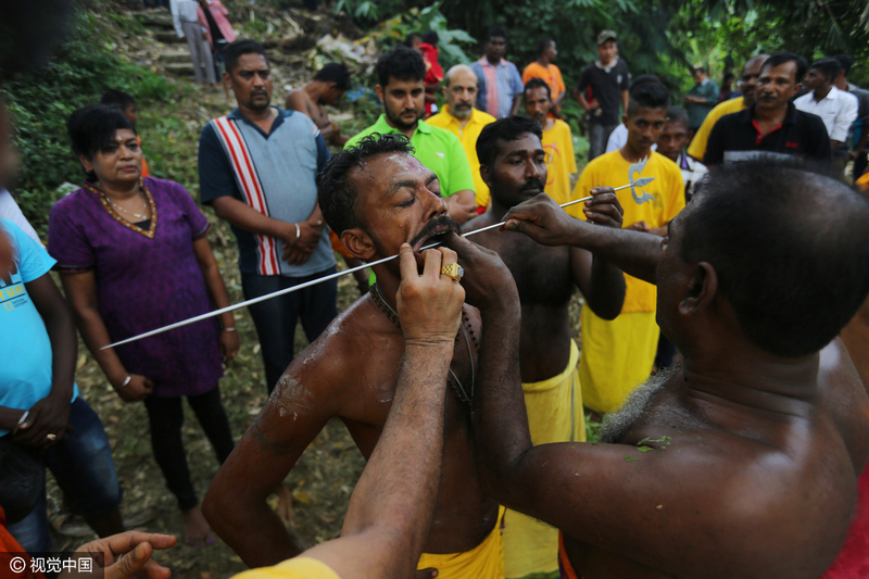 印尼民众庆祝节日 上演惊悚肉体穿刺(组图)