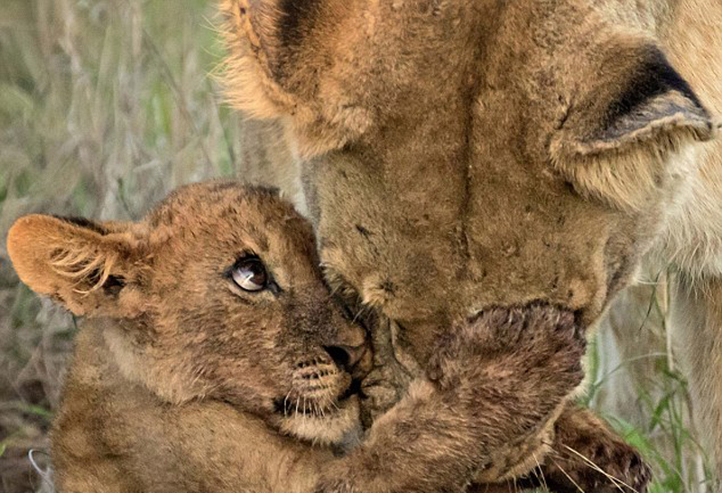 幼狮抱母亲面颊感谢养育之恩(组图)