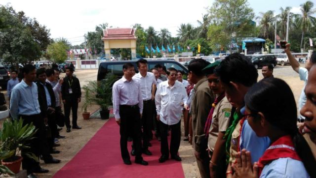图为2016年4月9日,柬埔寨人民党中央常委、政府副首相兼首相府大臣索安陪同中联部部长宋涛,赴茶胶省基里隆县考察人民党基层党建工作(图片来自中联部网站)