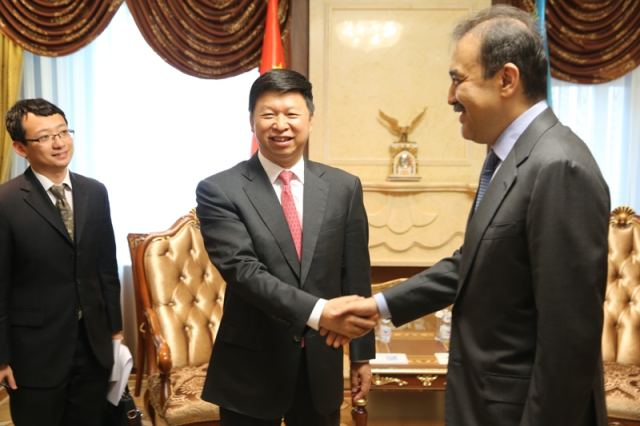 图为6月10日,哈萨克斯坦总理马西莫夫在阿斯塔纳会见中联部部长宋涛。(图片来自中联部网站)