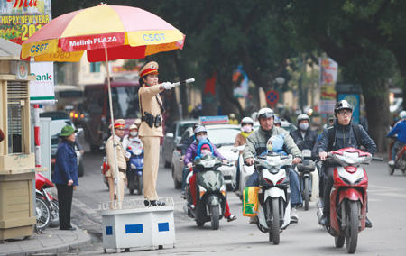 由于摩托车是越南主要的交通工具,虽然方便,但免不了风吹日晒。因此,白天在越南会看到奇特的一景,所有骑摩托车的姑娘都穿上了款式相似的防晒装,从上到下把整个人裹起来,戴上头盔和口罩,只留一双眼睛在外面。