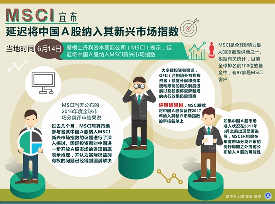 新华社纽约6月14日电(记者孙鸥梦)摩根士丹利资本国际公司(MSCI)14日在其2016年度全球市场分类评审结果中表示,延迟将中国A股纳入MSCI新兴市场指数。以下数个问答有助于理解一些涉及MSCI及其与A股关系的问题。