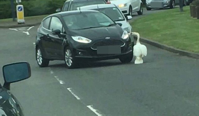 英愤怒天鹅路面暴走 突袭汽车致交通停滞(组图)