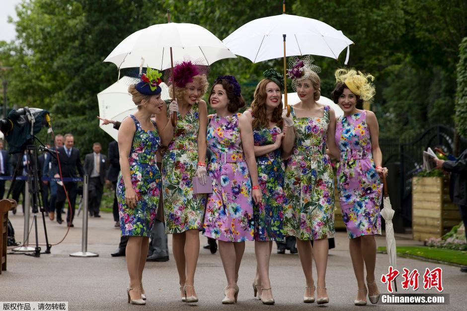 当地时间2016年6月14日,英国阿斯科特,皇家爱斯科赛马会首日,各名媛华服美帽争奇斗艳。