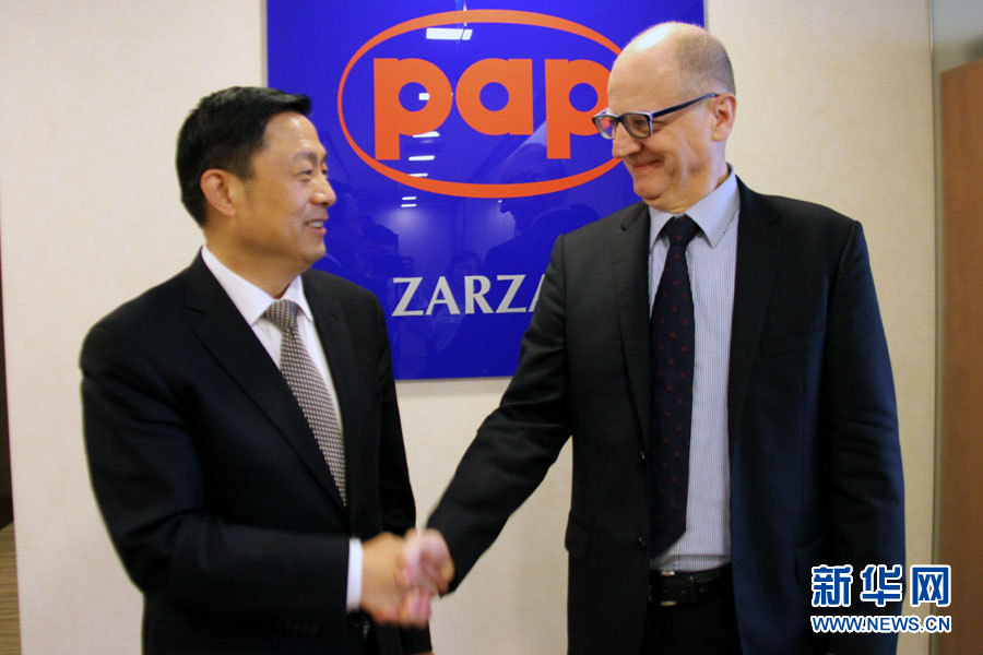 6月15日,在位于华沙的波兰通讯社总部,中国国务院新闻办公室副主任郭卫民(左)与波兰通讯社社长阿图尔·德莫霍夫斯基(右)进行会见。当天,中国国务院新闻办公室代表团在波兰首都华沙分别对波兰通讯社和波兰《共和国报》等波兰主流媒体进行了访问,代表团还分别与波兰通讯社及波兰《共和国报》领导层就中波两国媒体合作和“一带一路”建设等议题进行了热烈的交流和讨论。新华网记者 陈序 摄