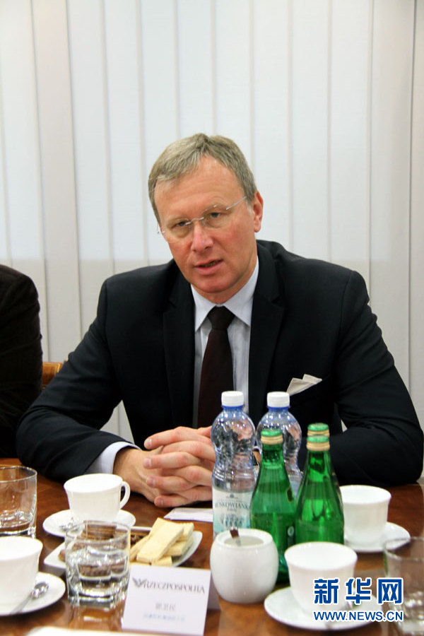6月15日,在位于华沙的波兰《共和国报》报社,《共和国报》总编辑博古斯瓦夫·赫拉博塔向国务院新闻办代表团介绍情况。新华网记者 陈序 摄