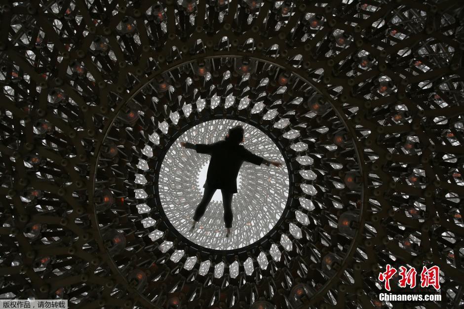 当地时间2016年6月15日,英国伦敦,来自英国诺丁汉的艺术家Wolfgang Buttress的建筑作品“蜂巢”。“蜂巢”由诺丁汉的艺术家Wolfgang Buttress联手设计师和工程师Tristan Simmonds设计创造,BDP建筑和建筑制造公司Stage One共同参与了项目的建设,作为2015年米兰世博会的英国馆建筑。
