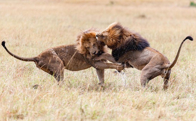 肯尼亚两雄狮为王位和交配权大打出手 场面激烈(图)