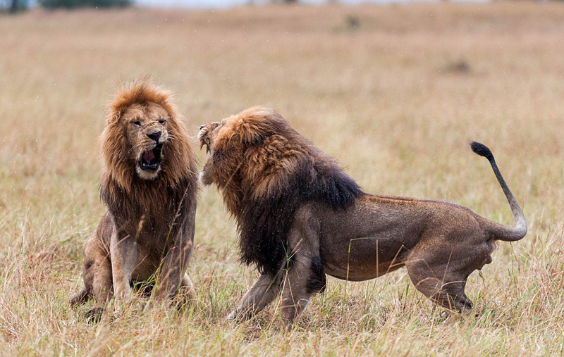 肯尼亚两雄狮为王位和交配权大打出手 场面激烈(图)