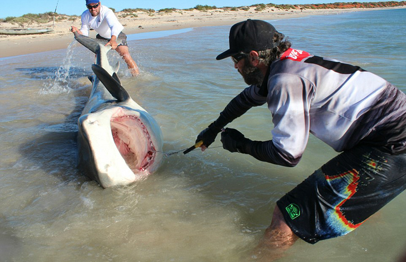 澳大利亚两渔民捕获10头巨型虎鲨(组图)