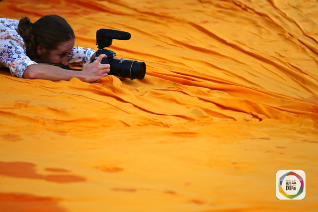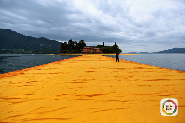 新华网北京6月17日电 16日,艺术家赫里斯托的大型艺术作品“浮桥”在距意大利米兰100公里外的伊塞奥湖举行媒体预览。“浮桥”将于6月18日至7月3日向公众24小时开放,人们可以行走在3公里长的“桥”面上参观。“浮桥”以22万个高密度聚乙烯立方拼接为主体,10万平方米黄色织物覆盖其上,随波浪起伏,同时根据光线不同呈现不同色彩。