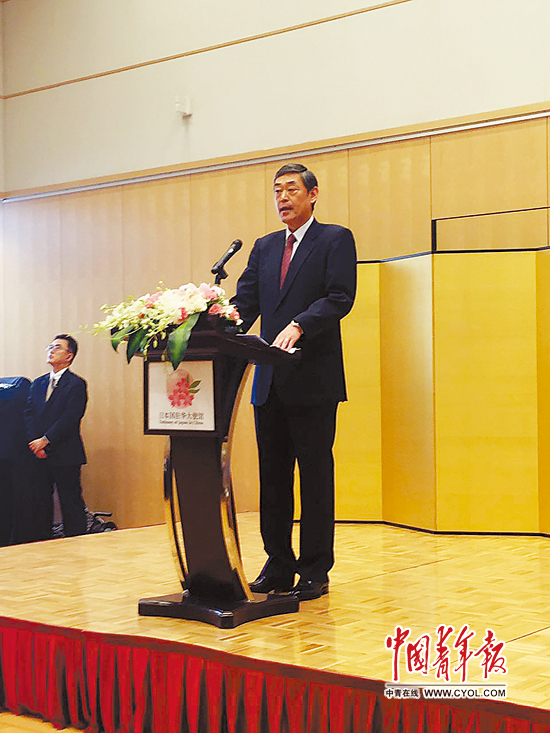 6月17日中午,日本新任驻华大使横井裕在到任招待会上致辞。