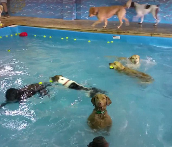 据英国《每日邮报》6月16日报道,近日,一段拍摄于美国弗吉尼亚州一家宠物狗寄养中心的视频走红社交网络。视频中,宠物狗们在泳池中玩耍狂欢,而一只叫做贝雅(Beja)的小狗却一动不动地站在水中,异常淡定,让人忍俊不禁。