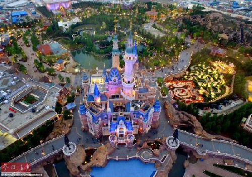 资料图片:上海迪士尼乐园夜景。